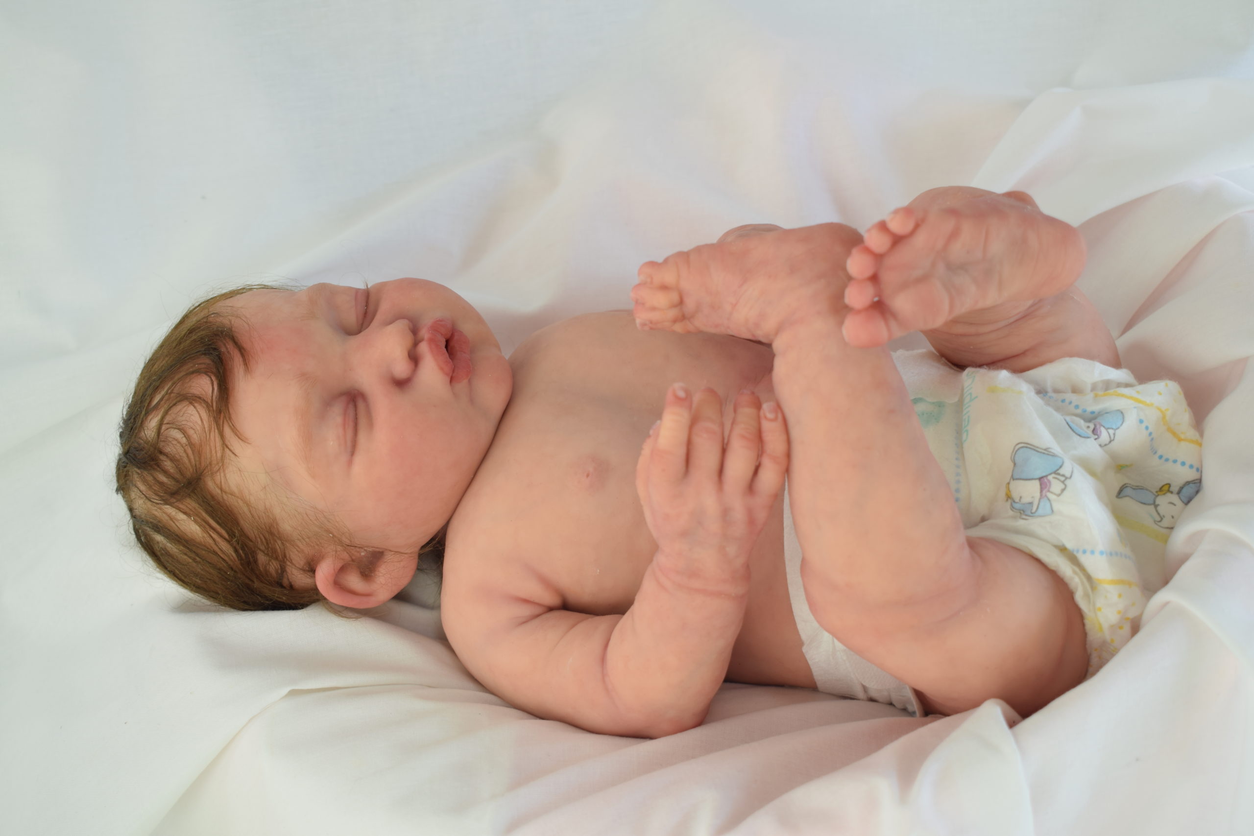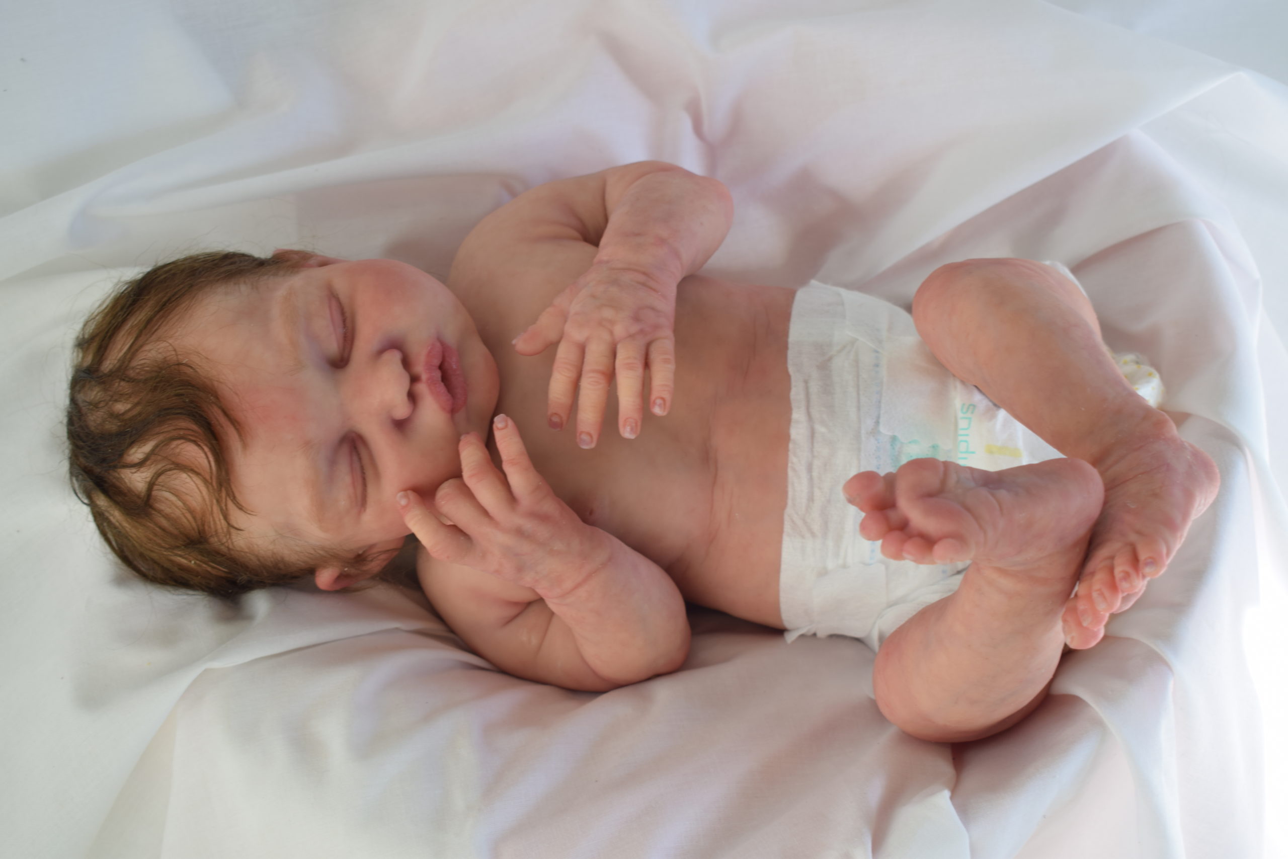 Cada curva de su carita fue esculpida para transmitir esa paz única que solo los más pequeños pueden regalar, un bebé que parece soñar en su propio mundo de amor.